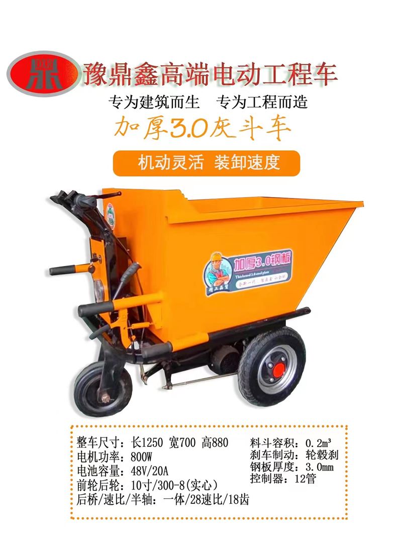 電動自卸車,長葛市鼎鑫祥瑞機械制造有限公司,加厚3.0灰斗車,咨詢電話:0374-6680655